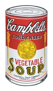 Circa-1920s curved, single-sided porcelain sign replicating a can of Campbell’s Vegetable Soup. Excellent color and gloss throughout. Only one touched-up chip at lower-right mounting hole. Faint wear along outer edge but excellent condition overall. Size: 22½in x 12½in x 3in. Condition: 8.75+. Estimate: $7,000-$14,000