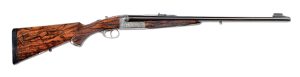 Circa-2009 Westley Richards Droplock .470 Double Rifle with scenes of big game (cape buffalo, rhinos, elephant) engraved/signed by Peter Spode, ‘P. Spode ‘09.’ Engraved over chambers ‘CAL. .470 NITRO-EXPRESS’ and ‘REG. FOR 500 GRN. BULLET.’ Chopper lump barrels with the manufacturer’s patented flip-over front sight. Wide concave rib gold-inlaid with the name ‘WESTLEY RICHARDS & Co ENGLAND.’ With Westley Richards case and accessories. Sold for $96,000 against an estimate of $45,000-$65,000