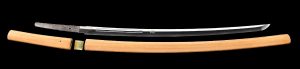 Historically important World War II sword forged by Masataka (Japan) at the Minatogawa shrine and signed ‘(Kikusui mon) Minatogawa Jinja Masataka,’ dated the 4th month during the 17th year of Showa (April 1942), and, critically, signed ‘Igo Kancho Tanabe Yahachi Chusa,’ which translates to ‘I-Class Captain Lieutenant Commander Yahachi Tanabe.’ Date and rank suggest the sword was with Tanabe when he sank the USS Yorktown aircraft carrier at the Battle of Midway, June 1942. Length: 39½in. Sold for $49,200 against an estimate of $18,000-$25,000