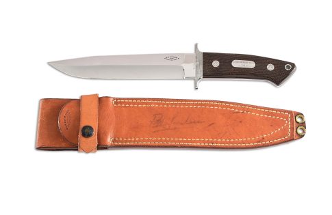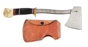 All collectors of outdoorsmen’s edged weapons know the name Bill Scagel (1873-1963). Scagel was a Michigan bladesmith and knifemaker whose style had a profound impact on the cutlery trade, influencing it for more than a century. At their September auction, Morphy’s offered a scarce handcrafted Bill Scagel hatchet or camp axe that displayed the maker’s renowned Kris stamps and W SCAGEL / HANDMADE in small lettering on the reverse cheek. The 12 7/8-inch hatchet had a large, distinctive pommel that was created from a shaved antler. The piece had been obtained at Scagel’s property by John Gordon Breland, a retired Muskegon, Michigan policeman who did carpentry jobs for Scagel, including the expansion of his home/workshop. A lifelong hunter, Breland acquired the hatchet from available stock at Scagel’s premises. Together with its leather scabbard, it sold for $20,400 against an estimate of $10,000-$15,000.