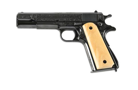 Fresh-to-the-market factory-engraved Colt 1911A1 .45 ACP semi-automatic pistol with Colt Archives letter. Originally shipped to Loan Account, Tritch Hardware Co., Denver, Colo., Oct. 16, 1925 in shipment of 1. Engraving and patterns consistent with signed examples from William Gough or his workshop. The auction’s top lot, it sold for $102,000 against an estimate of $40,000-$60,000.