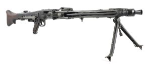 All-original Fully Transferable Maget World War II German MG42 full-auto-only machine gun dated 1943. Buttstock does not have retrofitted reinforcement wire, suggesting gun was captured in combat before this retrofit was fully implemented. Sold for $84,000 against an estimate of $50,000-$70,000