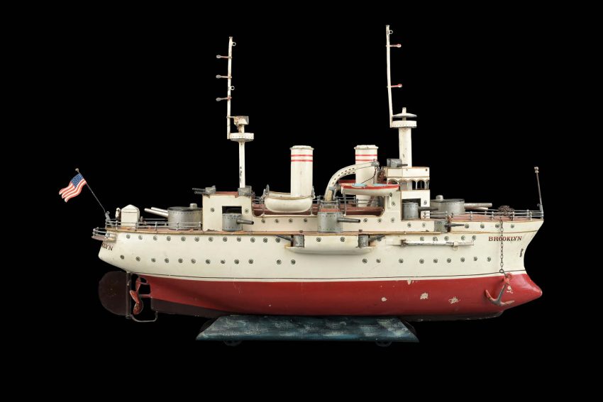 Marklin Cat. Ref. 5120 hand-painted, clockwork-powered ‘Brooklyn’ battleship. Length 25½in. Excellent to NM condition, with original stand. Its line of provenance included the collection of publishing magnate Malcolm Forbes. Sold for $56,580 against an estimate of $30,000-$50,000