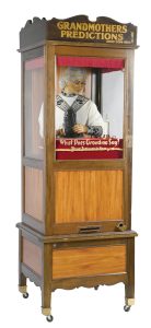 Grandmother always knows best, even when she’s looking into the future. An original 5¢ Grandmother’s Predictions (aka Cleveland Grandma) fortune teller arcade machine has three glass windows, with the front-facing pane screen-painted with the message “What Does Grandma Say? Your Answer Is Here.” Inside the unit, a realistic life-size Grandmother automaton with a wax head, brown hair, glass blue eyes and an attractive, well-detailed face stands ready to dispense a fortune to the next patron who drops a nickel into the slot. Recently restored, it comes with a supply of fortune cards and keys. Estimate: $15,000-$30,000