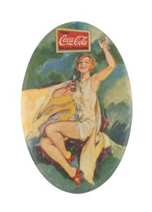 The auction features a parade of elegant beauties whose hairstyles and clothing choices reflect the Gilded Age aesthetic, which carried over into the first decade of the 20th century. One notable example is a large and impressive circa-1905 Pepsi-Cola cardboard sign with the image of “Miss Pepsi-Cola” holding an early soda fountain glass. The message says “Drink Pepsi-Cola / Delicious / Healthful,” for the price of 5¢ “At Founts” or “In Bottles.” The sign measures 27¾ inches by 34¼ inches, and its condition is a strong 8.5. Estimate: $10,000-$20,000